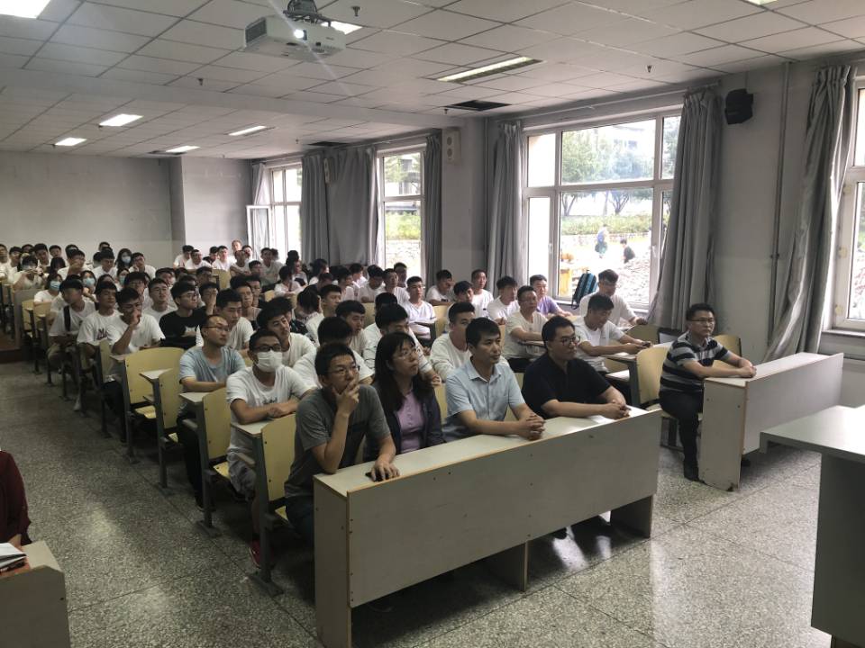 韩顺杰经理结合当前形势与公司的基本情况展开讲话,着重介绍了公司的团队建设、团队力量和发展方向,让新生们充分了解专业前景和努力方向,进一步明确研究生个人规划,同学们认真听讲,学术氛围热烈。