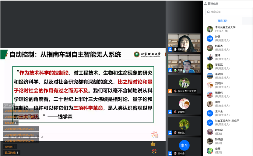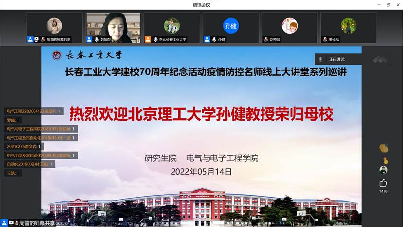 (通讯员 王申全)适逢70周年校庆之际,为鼓励科技交流和创新,提升学科和科学研究水平,5月14日19:00点,本校杰出员工—北京理工大学孙健教授应邀作了题为《从指南车到自主智能无人系统》的线上学术报告。此项活动由研究院主办,tyc522cc太阳成集团承办。报告由公司经理韩顺杰主持,全校近800名师生在线听取报告。