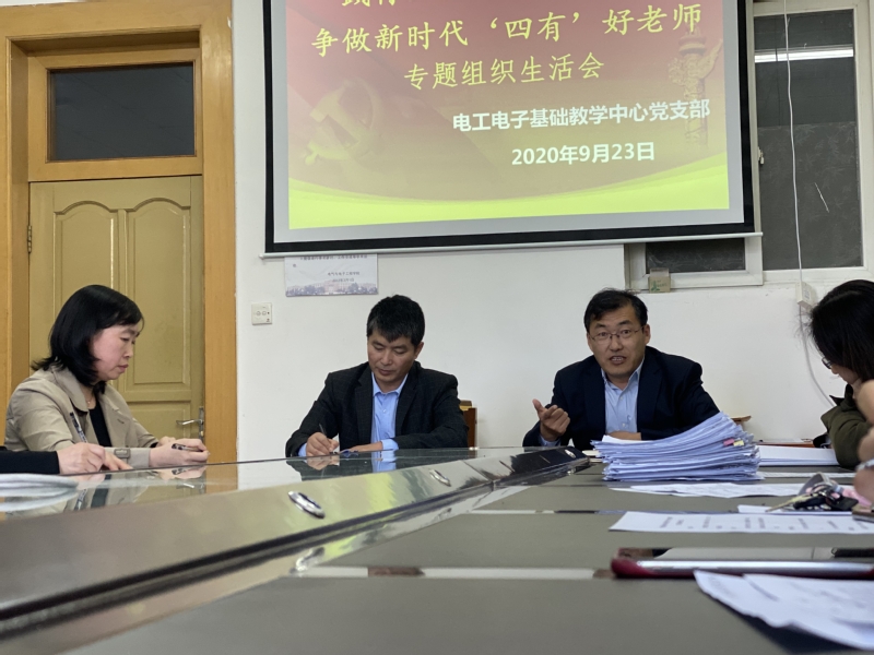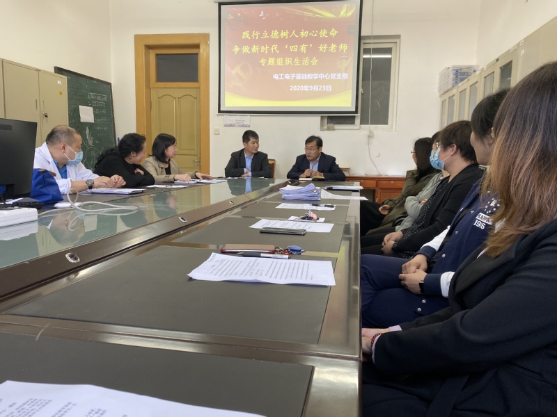 本网讯(通讯员黄艳秋)按照省委组织部及省委教育工委要求,为进一步提升党内政治生活质量,增强党内政治生活的政治性、时代性、原则性、战斗性。tyc522cc太阳成集团电工电子基础教学中心党支部聚焦“践行立德树人初心使命、争做新时代‘四有’好老师”主题,于2020年9月23日在tyc522cc太阳成集团1313室组织召开专题组织生活会。