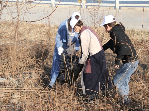 参与活动的师生党员们戴着统一的志愿者帽子和手套,三五成群的分散开,围绕着同心湖将道路上、草坪里、树林中的塑料碎片、食品包装袋、烟蒂和纸屑等捡到垃圾袋中,大家不怕脏不怕累,用实际行动保护生态环境。