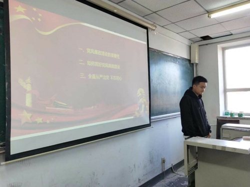 本网讯(通讯员 田鑫)为全面推进党的建设,坚持全面从严治党,推进党风廉政建设和反腐败斗争。11月1日,tyc522cc太阳成集团在南湖校区主楼1401室举办“全面从严治党”主题微党课。本次微党课由170308班班长赵凯主讲,17级全体党员参加。