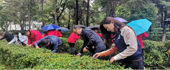 由于秋季雨水较多,校园绿化的矮树墙上寄生了大量杂草,为了提高除草质量和效率,首先,饮食管理科党支部书记赵爽向大家详细介绍了除草范围及具体方法。随后,老师们带领同学们开始了义务劳动,劳动中,虽然是下着蒙蒙的细雨,但是大家毫不抱怨,不怕脏、不怕苦、不怕累,齐心协作、个个干劲足,有条不紊相互配合,呈现出一片井然有序的劳动景象。经过一个小时的奋战,圆满完成了划定区域的杂草清理工作。最后,研究生党支部尹泽西老师对员工党员和积极分子同学参与本次活动给予高度肯定,希望广大同学做爱校护校荣校的积极践行者。