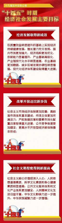 党的十九届五中全会提出了“十四五”时期经济社会发展主要目标,并对“十四五”时期的工作作出部署。