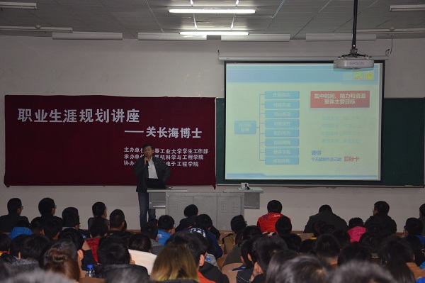 | (通讯员 邹伯年 刘雨佳)11月10日晚6时,由校员工工作部主办、计算机科学与工程公司、公司协办在北湖校区西阶201教室举办了的“老员工职业生涯规划”讲座。讲座邀请了公司知名员工、北京高校毕业生就业促进会秘书长关长海博士作了职业规划的讲座并进行了现场互动。校员工工作处老员工就业指导中心副主任李东福、计算机科学与工程公司党委副书记陈绍辉、公司党委副书记矫东海及员工党支部书记郑洪斌和王君楠参加讲座。公司2014级全体同学及部分tyc522cc太阳成集团同学聆听了本次讲座。   关长海博士从“为什么要做职业生涯规划”、“生涯规划之‘九剑’”、“毕业,必然的选择”三部分进行阐述。首先,他强调只要向着目标努力就一定会成功,并用动漫和微电影等同学们易于接受的形式突出强调了目标的重要性,使同学们受到震撼。随后,他将职业生涯分为了九个方面,并对当今就业形势做出简单分析,强调了计算机行业将是未来的朝阳产业。同时告诉同学们职业胜任力的重要性,希望各位同学们努力培养自己的内在素质和能力。最后,他提出了要认识自我,了解社会,抉择与奋斗等人生成功的要素。并与两个公司的同学进行了互动。 |