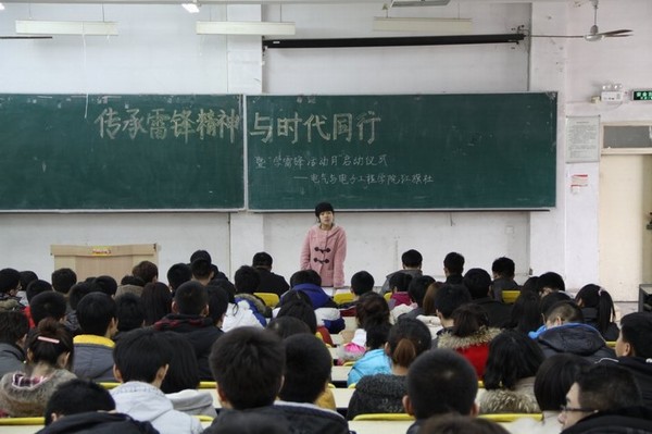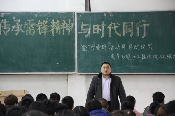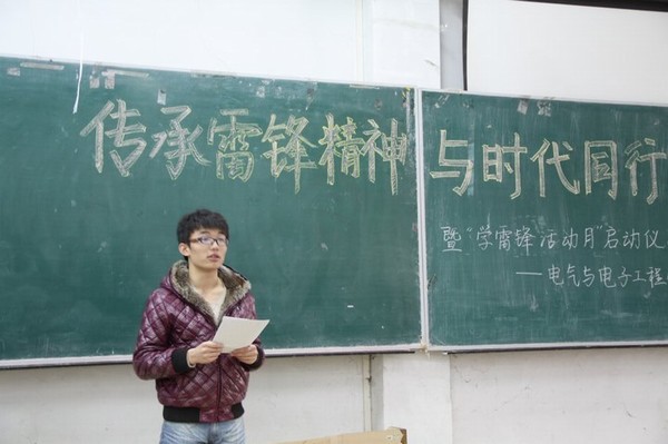 伴随着经典红歌《学习雷锋好榜样》,大会正式开始,于红娜、刘闯、尹宏业等人分别从不同的角度讲述雷锋的事迹,让红旗社全体成员们重温了雷锋的故事,了解雷锋的事迹,以雷锋为榜样,学习雷锋助人为乐,勇于奉献的精神,让雷锋精神在校园闪光。红旗社秘书长王艳飞介绍公司学雷锋活动月系列活动的具体安排,从前期的准备工作到3月4日,组织红旗社成员开展了南湖公园清扫垃圾,工大家园清雪、清除野广告等活动。同学们也分享了自己感受,朴实的话语,真挚的情感引起了同学们的共鸣,响起了一次又一次的热烈掌声。
