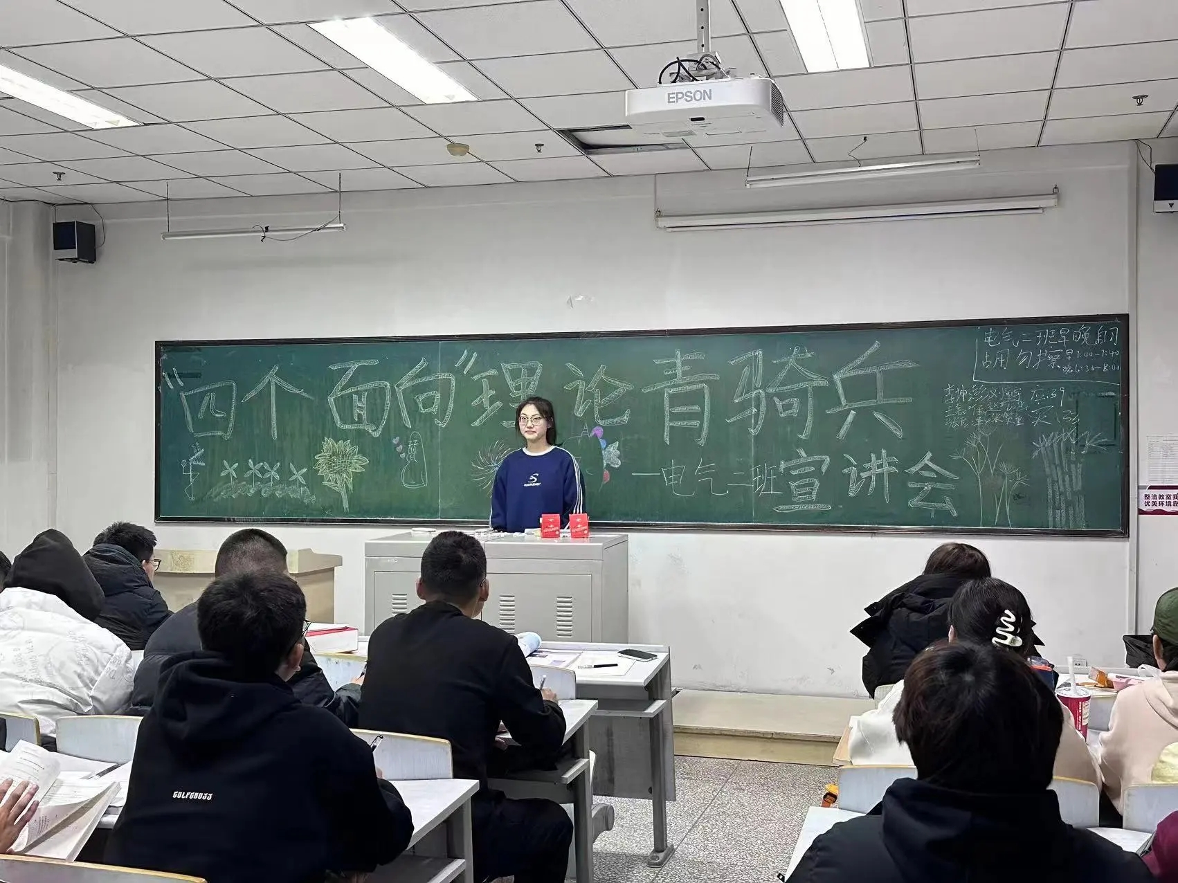 本网讯(通讯员 王亮)为深入贯彻落实团员和青年主题教育,发挥先进团员和青年的示范引领作用,tyc522cc太阳成集团各班级召开“四个面向”理论青骑兵宣讲会。