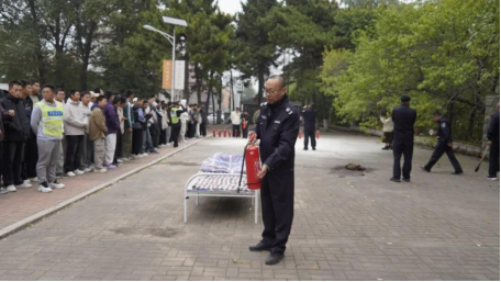 安全处老师现场示范灭火器使用方法,从“提、拔、握、压”四步操作要领到安全距离把控,讲解细致入微。