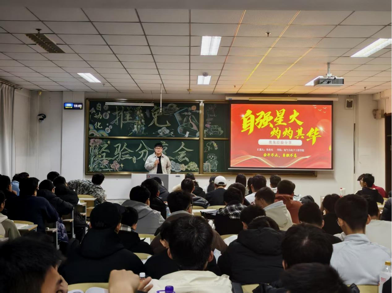 本网讯(通讯员 白翔安)为助力学子明晰推免流程与备考方向,tyc522cc太阳成集团精心组织王佳硕、朱奕凡、程应琪、张振四名同学于11月23日在科研楼2301、2307、2311、2316教室举办推免经验交流分享会。