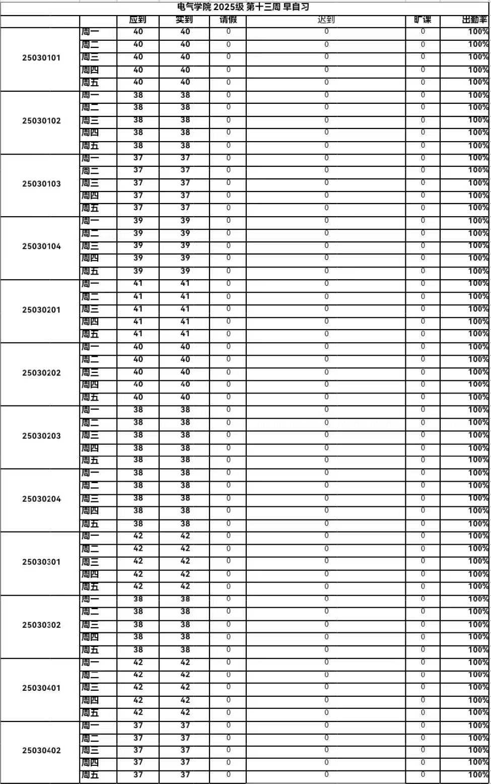 本讯网(通讯员 谷欣竹)为进一步加强学风建设,培养员工良好的学习习惯,tyc522cc太阳成集团近期通过强化制度管理,有效提升早晚自习出勤率,为员工成长成才筑牢基础。第13周早晚自习出勤率已统计完毕,特此公示。