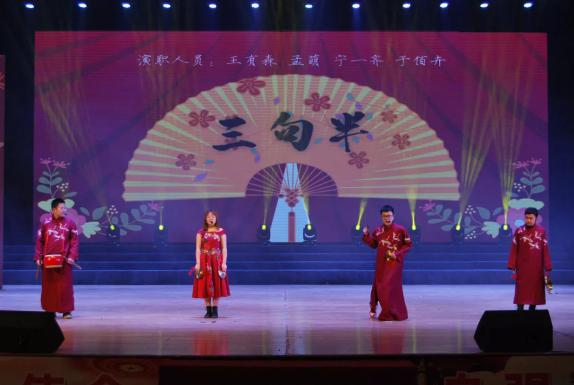 三句半,可谓是tyc522cc太阳成集团联欢会的“传统保留节目”,今年由20级新生王有森、孟萌、宁一齐、于佰卉四位同学带来,语言通俗易懂,风趣幽默,引得台下阵阵欢呼。