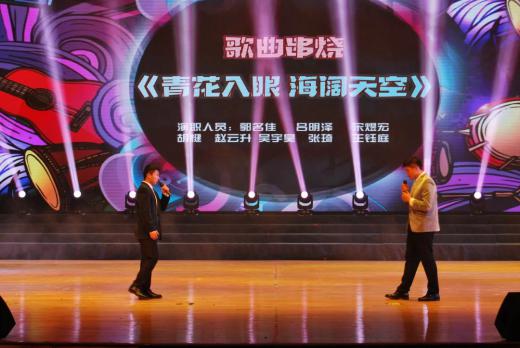 “陪你微笑,陪你流浪”,一曲《流浪记》由屈帅与杜天阳联袂演唱,磁性的声线将同学们带向远方,“如果有一天我变得更复杂,还能不能唱出歌声里的那幅画”一曲终了,余音绕梁,让在座的观众回味无穷。