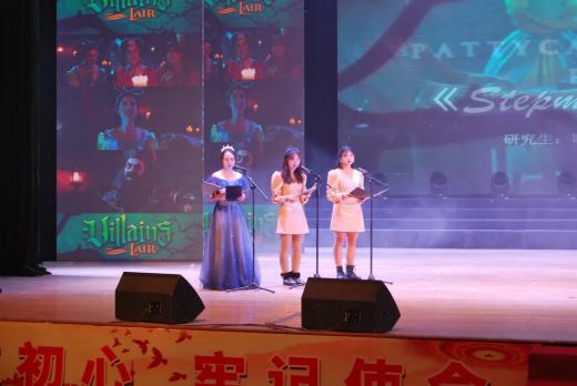 全新的表演形式——配音秀《Stepmother’s tea party》,由研究生耿艺宁、宋子瑶、史元森、周思羽倾情奉献,标准的美式口语发音,令人捧腹大笑的剧情,全场不断的欢笑声足以见得节目的效果非常成功。