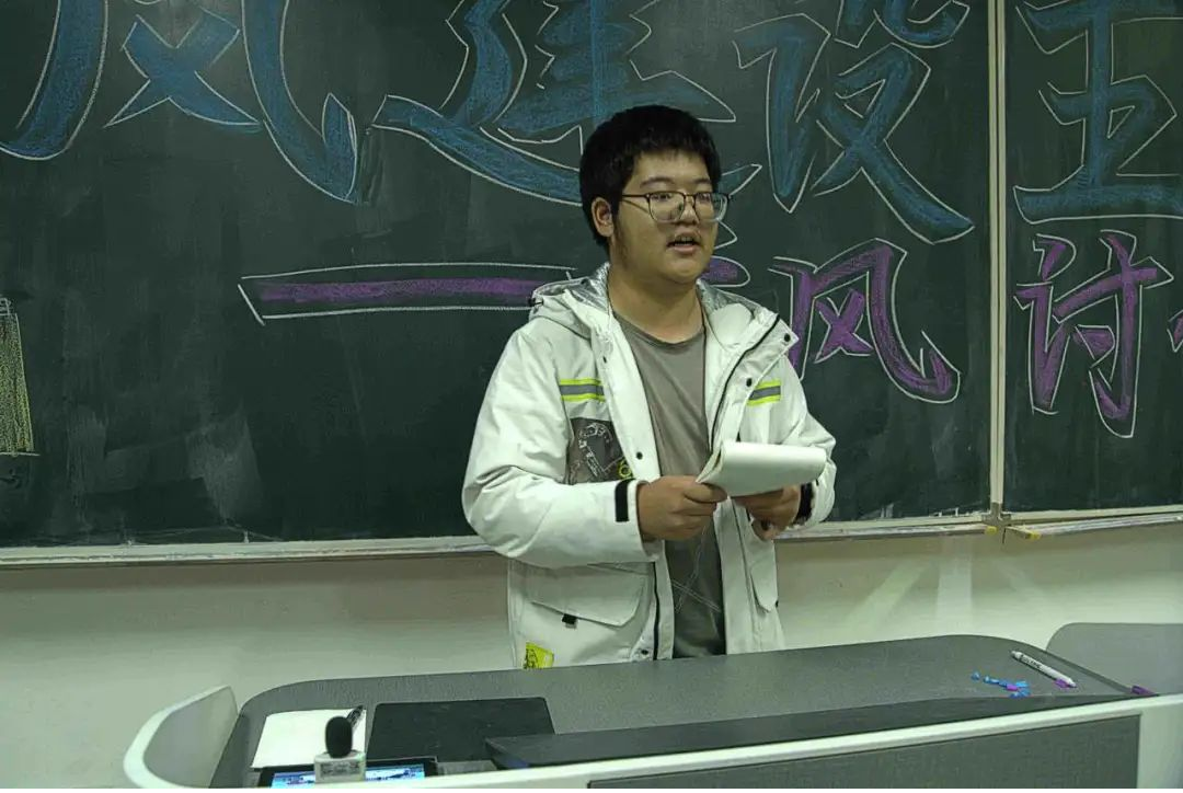 针对小组讨论出来的学风问题,台下同学们踊跃发言,争先对问题提出了个人的解决方法,台上学长仔细倾听,和同学们一起讨论如何严于律己,共同营造更好的学习氛围。