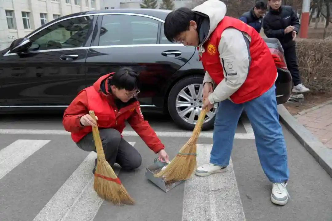 活动当日,志愿者们迅速集结,按照提前规划好的分组,在组长的有序组织与协调下,干劲满满地奔赴各自负责的区域,一场校园环境保卫战就此拉开帷幕。在校园道路上,志愿者们手持扫帚、拖把、垃圾袋等清洁工具,不放过任何一个卫生死角,将地面上的杂物、垃圾清扫得干干净净;走进教室,他们又化身为细致入微的“清洁使者”,仔仔细细地擦拭黑板,将课桌椅摆放得整整齐齐,每一处细节都被打理得井井有条。