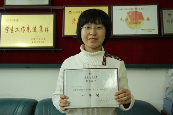 冯畅获校第四届“金话筒”主持人大赛一等奖