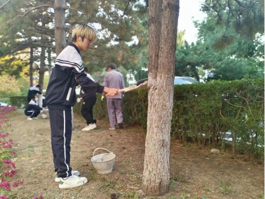 本网讯(通讯员 王亮)为深入贯彻落实“绿水青山就是金山银山”的绿色发展理念,丰富员工生活实践经验,提高同学们劳动能力和热情,增强同学们的环保意识。2023年10月11日下午,tyc522cc太阳成集团举办“给树木防虫涂白”志愿服务活动。