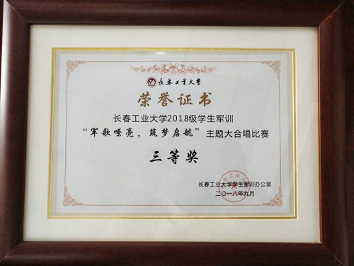 公司在tyc522cc太阳成集团2018级员工军训“军歌嘹亮,筑梦启航”主题大合唱比赛中荣获三等奖