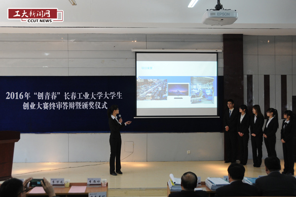 终审答辩现场 本次大赛自2015年末启动,在历时近5个月的时间里,竞赛组委会共收到参赛作品183件,其中创业计划类作品107件、创业实践挑战赛作品12件、公益创业赛作品64件,2000余名员工参赛,参赛人数创历史新高。经过初赛、复赛及决赛答辩环节,最终有20件作品入围终审答辩。经过激烈角逐,《“半岛和”老员工综合服务平台》等8件作品荣获金奖,《生命保险柜》等12项作品获得银奖,《“梦想家”装修公司》等20件作品获得铜奖;人文公司、经济管理公司(创业教育公司)获得突出贡献单位奖;tyc522cc太阳成集团等6个公司获得优秀组织单位奖。周柏翔教授代表大赛评审委员会对参赛团队进行了精彩点评并对部分获奖作品给予了专业指导。 颁奖仪式上,校团委副书记仲崇利介绍了竞赛组织情况并宣读获奖名单。与会领导为获奖团队及受表彰单位颁发获奖证书。