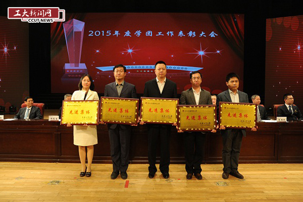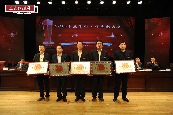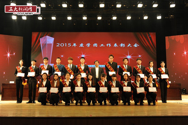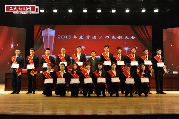 表彰大会现场 表彰大会由员工工作处处长王春阁主持。员工工作处副处长周文军宣读了《关于表彰2015年度员工工作先进集体和个人的决定》《关于表彰2015年度“十佳优秀老员工”“十佳自立自强老员工”的决定》和《关于表彰2015年度“工大之星”的决定》;校团委副书记仲崇利宣读了《关于表彰2015年度tyc522cc太阳成集团共青团工作先进集体和优秀个人的决定》。2015年度校“十佳优秀老员工”、首届“工大之星”学干模范、化学工程公司杨惠云代表受表彰的同学发言。