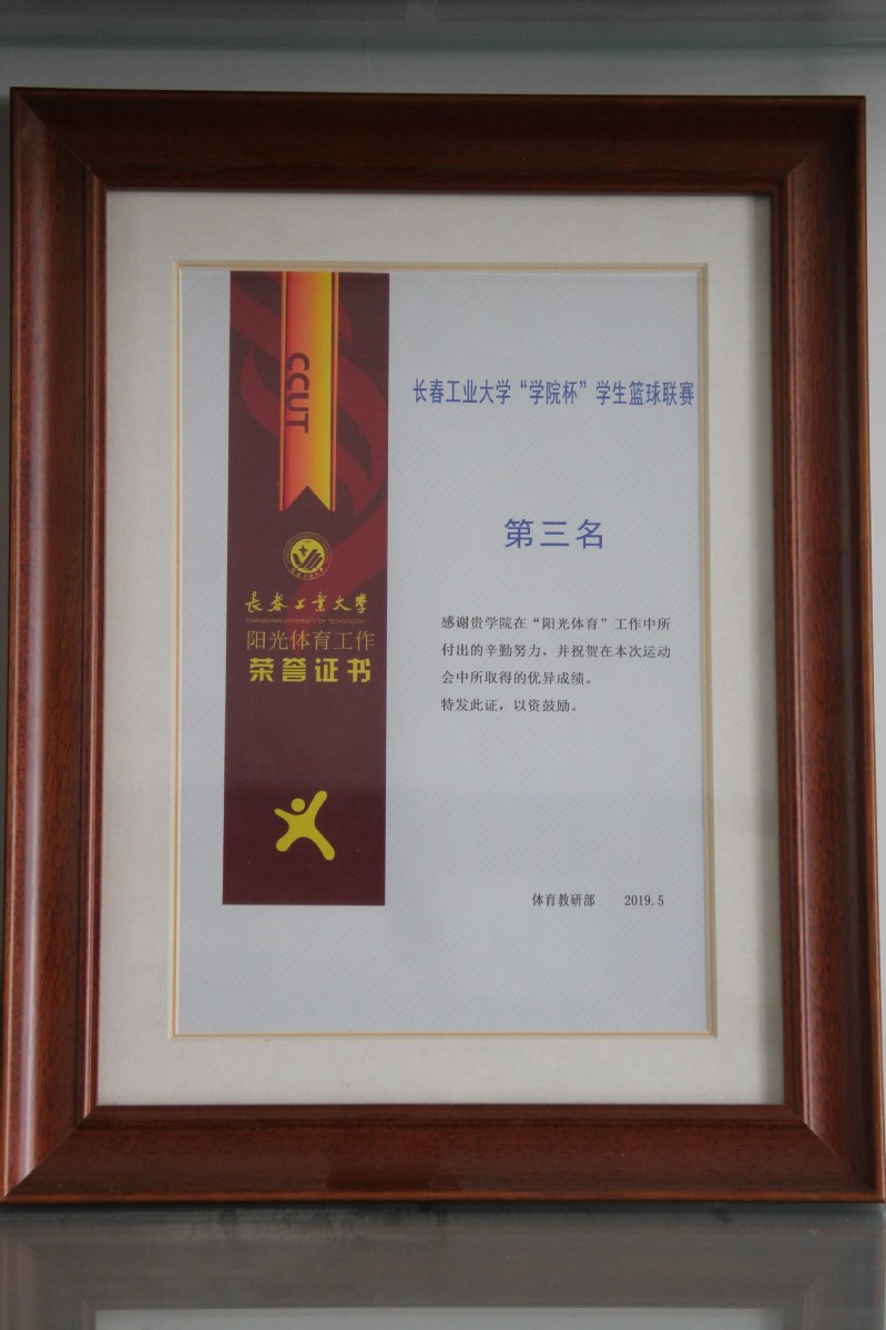 公司获得tyc522cc太阳成集团“公司杯”员工篮球联赛第三名
