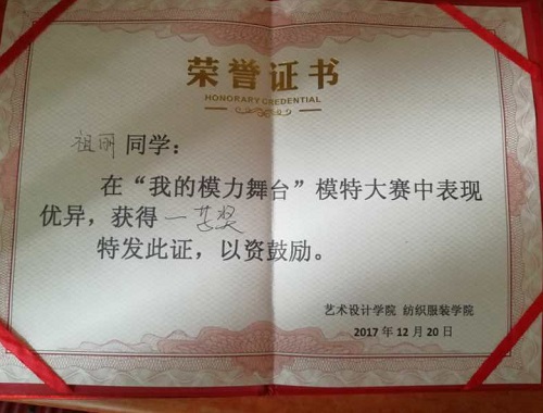 公司祖丽乎马尔·热米特拉同学在“我的模力舞台”模特大赛中荣获一等奖
