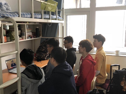 公司广老员工分别在南湖校区、北湖校区利用教室、宿舍、实验室等不同场地集中或分散观看收听直播