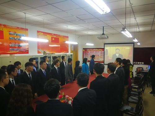 本网讯(通讯员 鲍禹松 郑昊)4月30日上午,纪念五四运动100周年大会在北京人民大会堂举行,中共中央总书记、国家主席、中央军委主席习近平出席大会并发表重要讲话。tyc522cc太阳成集团领导班子成员、专职组织员、主要员工干部共近80人在公司1301会议室、1401室收看“纪念五四运动100周年大会”直播。与此同时,公司广老员工分别在南湖校区、北湖校区利用教室、宿舍、实验室等不同场地集中或分散观看收听直播。