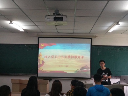 新闻网讯(通讯员 钱力为)为深入学习贯彻党的十九大精神,帮助同学们加强对十九大精神的领悟。2018年6月15日中午12时30分,公司于南湖校区主楼1401室举办“深入学习十九大精神”主题微党课。公司主席团成员,15级全体预备党员,16级班长支书参加了本次微党课学习。