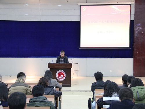 新闻网讯(通讯员 高博)为深入贯彻党的十九大精神。11月22日,tyc522cc太阳成集团于南湖校区综合三教室举办宣讲党的十九大精神专题党课。本次党课由公司党委副书记李雁冰主讲,公司全体教工党员,14、15级员工党员及部分入党积极分子参加本次党课。