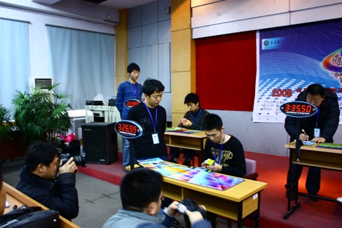 12月7日,由公司魔方协会和吉林大学魔方协会共同举办的“2008圣恩杯”首届长春魔方公开赛在公司综合楼三楼报告厅举行。长春晚报,新文化报、城市晚报、吉林电台等新闻媒体对本次活动进行了全程报道。校员工工作处副处长杨文龙,校团委副书记胡刃锋,公司党总支副书记周文军及员工工作办公室各位老师出席了本次活动。 这次长春公开赛是即北京、上海、广州之后我国第四次地域性的大型公开赛。参加本次比赛的有来自吉林、黑龙江、辽宁和内蒙古四个省份的47名高手。这些选手中年龄最小的是15岁的初中生,年龄最大的是35岁的教师。和选手一同到来的还有许多亲友团和慕名而来的观众。本次大赛共有Square-1、二阶速拧、三阶速拧、四阶速拧、三阶单手速拧五大项目。上午9点半,公开赛拉开帷幕,打乱区、裁判区等工作人员各就各位,比赛如火如荼的进行起来。魔方在各选手灵活的手指间飞快旋转,每当有选手突破记录都会引起观众和亲友团的欢呼和鼓掌,场面热烈而火爆!比赛期间,大赛的组委会还特意为观众们准备了表演,飞碟杯和魔块、魔球、魔板、XQ魔方等各种异型魔方飘逸地旋转在高手们的手中,简直成为了一个个具有魔力的精灵,引起了现场一片片欢呼声,所有的观众几乎都站了起来,把现场气氛推到了高潮!在下午的三阶速拧半决赛中,一个来自本省的选手复原的时间达到了17.24秒,与世界记录只差了2.10秒,当时他的母亲激动的上前去拥抱了他的儿子,那一刻牵动了所有在场人的心!最后经过了初赛、复赛、半决赛、决赛多轮的角逐,公司张显吉和吉林大学王思宇等多名选手获得了各个项目的冠军。下午4点半,与会的领导为获奖者颁发了证书和奖品,历时7个小时的比赛圆满的落下了帷幕。 魔方是匈牙利建筑学教授和雕塑家厄尔诺鲁比克于1974年发明的,上世纪八十年代传入中国。玩魔方是一项能增强空间想象能力的传统的智力游戏,包括极具刺激性和竞技性的速拧,单拧,盲拧等玩法。如今魔方文化在欧洲各国家已经十分盛行,而在中国,还仍处在一个初步发展的阶段。这次公开赛的成功举办使所有到场的人们深深的意识到魔方不仅仅是开发智力的玩具,它已日渐成为一种学术性的文化,并且在中国,也有肥沃的发展土壤和广阔的发展空间。我们也能有专业的选手和职业的比赛!此次公开赛在公司的成功举办,丰富了公司老员工的校园文化生活,也为构建公司多元社团文化做出了积极的贡献。