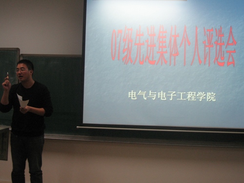 为了鼓励先进,配合公司2008年度学团表彰工作顺利开展。12月14日晚8:00,公司在教学科研楼201教室举行先进集体、个人评选会,辅导员赵爽老师和07级各班班长和团支书参加评选会。