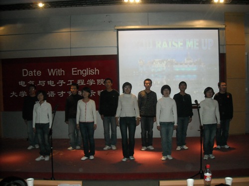 2008年11月4日,公司“Date with English ”老员工英语才艺展示晚会在综合三拉开序幕。员工工作处员工管理科科长黄向东,校团委社会实践部部长马辉,员工工作处邵捷,公司党总支副书记周文军及员工办公室的各位老师莅临晚会。 晚会在电气乐队演唱《卡农》和《Break out》中拉开了帷幕,同学们多才多艺,节目丰富多彩,既有庄严而又振奋人心的著名演说《I have a dream》,又有幽默风趣的话剧《孔雀东南飞》,同时外国语公司友情支持演出的歌曲《Just one last dance》和劲舞《So hot》,给同学们带来原滋原味的英美时尚文化享受。一首经典英文歌曲《Larger than life》,点燃了全场观众的激情,将整个晚会推向了高潮。最后在电气之声合唱团那充满爱与温馨的主旋律中圆满落下帷幕。 通过这次晚会我们充分领略到英语的独特魅力,提高了老员工学习英语的热情,点缀了丰富的大学课余生活,促进了公司与外国语公司的交流,同时晚会也为同学们提供了展现自己才华的舞台,让他们在英语的世界里尽情书写自己的青春。