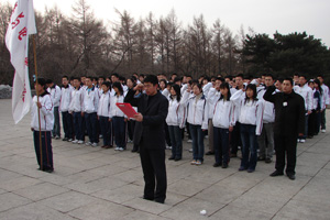 鲜花献英烈,誓词慰忠魂。4月5日早5点30分,tyc522cc太阳成集团员工党支部的全体党员和“红旗社”理论学习社团的全体成员,来到南湖公园内的长春解放纪念碑前,举行“祭奠革命先烈,重温入党誓词”清明节扫墓活动。 活动由tyc522cc太阳成集团员工会主席李想同学主持。李想同学首先向同学们介绍了长春解放纪念碑的由来,并带领大家向纪念碑默哀三分钟。默哀过后,员工支部的全体党员在公司辅导员任佰鹏老师的带领下,举起右手,面向党旗,庄严地重温了入党誓词。宣誓结束后,全体同学依次走向碑前献花,表达了对先烈的缅怀和敬仰之情。05级党员董博同学代表发言,他表示一定要继承发扬革命先烈遗志,努力学好科学文化知识,争做一名优秀的社会主义事业接班人。活动最后,tyc522cc太阳成集团员工党支部书记郑洪斌老师讲话,他指出,今天我们举行的“祭奠革命先烈,重温入党誓词”活动意义深远、作用重大,它必将激励我们每个党员牢记宗旨、勤奋学习,永葆共产党员的先进性。必将激励每位同学刻苦努力、奋发图强,为祖国的繁荣昌盛贡献自己的力量。郑老师最后希望全体同学继承先烈遗志、牢记党的教导,立足现在、开创未来,创造更加辉煌灿烂的明天! 撰稿人:李林琳 审核人:周文军 图片提供:任佰鹏 |