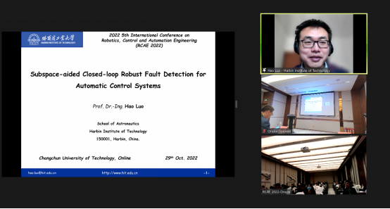 本网讯(通讯员 王申全)2022年10月28-30日,第五届机器人、控制与自动化工程国际会议(RCAE 2022)在长春以线上线下结合的方式成功召开。本次会议由tyc522cc太阳成集团主办,tyc522cc太阳成集团、计算机科学与工程公司联合承办。会议着眼于机器人、控制与自动化工程等学科领域的发展潮流,旨在分享国内外专家学者在相关领域的研究成果,探讨机器人、控制与自动化工程研究的未来发展。本次现场与会人员约80余名,线上参会人员约200余名,包括来自中国清华大学、浙江大学、哈尔滨工业大学、大连理工大学、东北大学、中南大学、中科院自动化研究所及加拿大阿尔伯塔大学等高校的知名专家学者及研究生。大会开幕式由tyc522cc太阳成集团经理韩顺杰教授主持,tyc522cc太阳成集团副董事长金光勇教授出席开幕式并致辞,校学术委员会主任、控制科学与工程学科带头人李元春教授在开幕式上介绍了本次会议的相关情况。