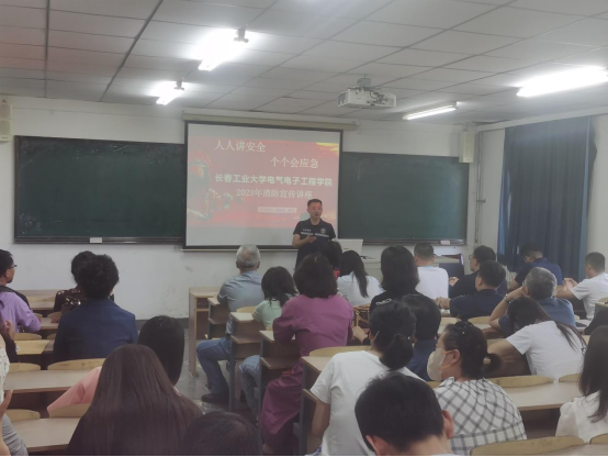 讲座中,周教官借用多媒体播放了全国各地引发的各种火灾情形及给国家、社会、个人带来的严重后果,结合自身多年的消防工作实践,介绍了容易引发火情的原因及造成的危害,详细讲解了发生火灾后的自防、自救及逃生技能。同时,为公司教职工细致解答了日常工作和生活中所遇到的消防问题如何及时正确的应对。