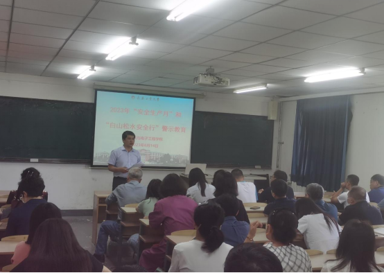 首先,由公司党委书记按照上级指示精神落实《关于开展2023年“安全生产月”和 “白山松水安全行”活动的通知》有关要求进行传达,警示全院教职员工要确保安全第一,预防为主,持续树牢安全红线意识,推动安全生产责任落实,切实提高风险隐患排查整改质量,切实提升发现问题和解决问题的能力和水平,进一步提升全院师生安全意识和避险逃生能力。