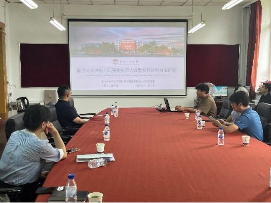 在交流会上,董博做了题为“面向复杂环境共融协作任务的可重构机器人系统博弈优化控制”的报告,介绍了课题组近期的研究工作进展,针对可重构机器人的实际应用背景与结合任务需求,考虑可重构机器人的不同构型、工作环境、面向对象等多个角度,提出相应的控制方法以实现最优控制。潘强作题为“面向复杂任务约束的多臂可重构机器人自学习优化协调控制方法研究”的报告,对课题组现阶段的国家自然科学基金面上项目的中期研究进展进行了详细汇报,总结了目前的研究成果。王悦西做了题为“面向人机共融的可重构机器人分散交互控制方法研究”的报告,对其目前所研究的工作内容进行了汇报,针对人机交互任务下的可重构机器人控制方法以及主被动模式切换进行了详细阐述。