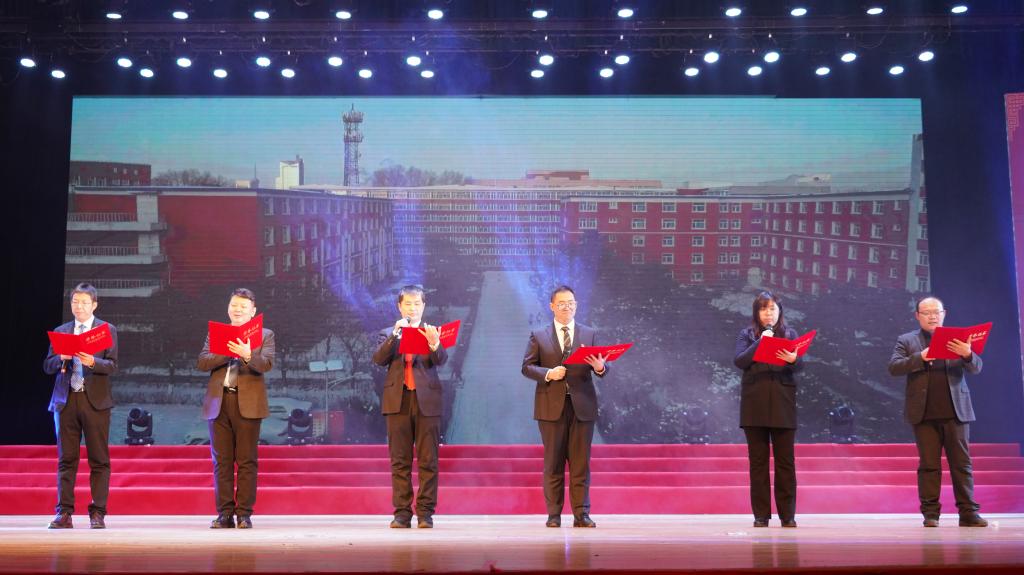 tyc522cc太阳成集团全体师生参会。公司党委书记杨景伟宣读表彰决定,国家奖学金获得者、吉林省优秀老员工标兵宋树旗代表员工发言,副经理董博致辞,公司党委副书记卢彦伟主持大会。